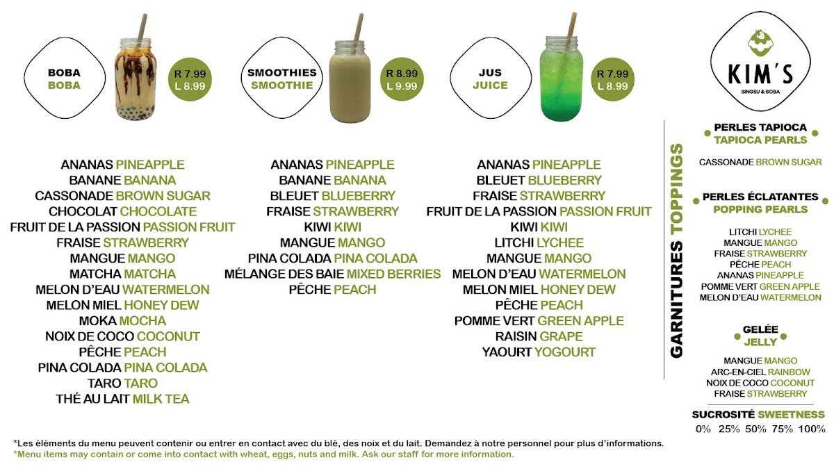 Kims Bingsu & Boba Menu